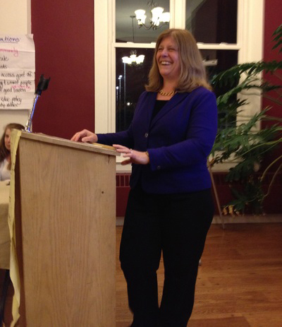 Claire addresses the class