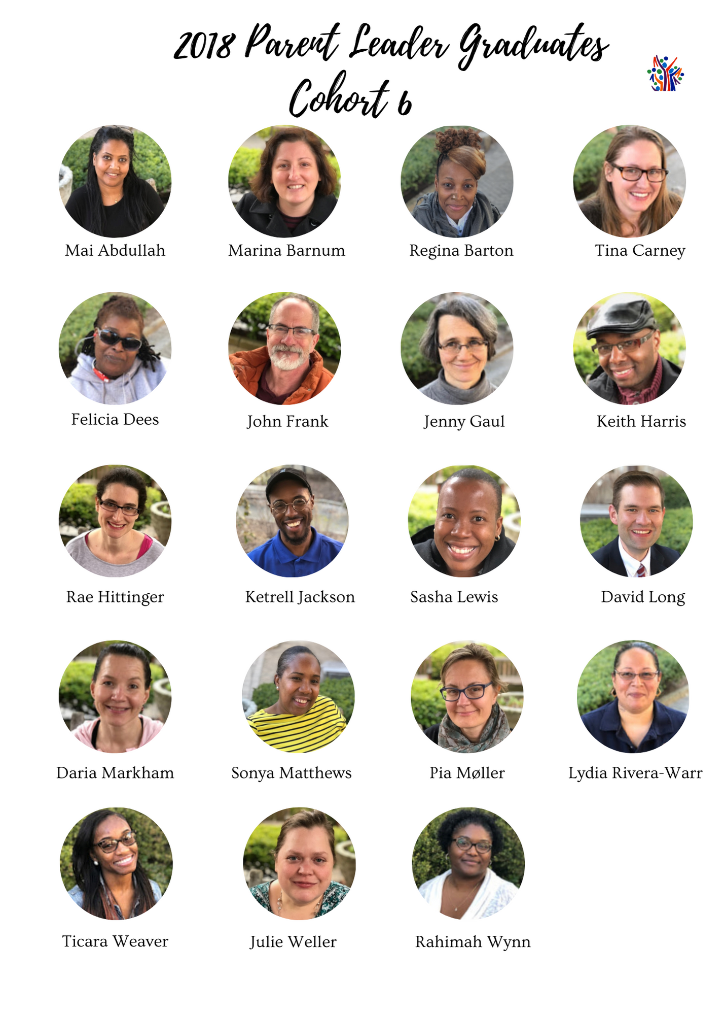 Mai Abdullah, Marina Barnum, Regina Barton-Johnson, Tina Carney, Felicia Dees, Trinell Elliott, John Frank, Jenny Gaul, Keith Harris, Rae Hittinger, Ketrell Jackson, Shanielia Lewis, David Long, Daria Markham, Sonya Matthews, Pia Moller, Lydia Rivera-Warr, Ticara Weaver, Julie Weller, Rahimah Wynn